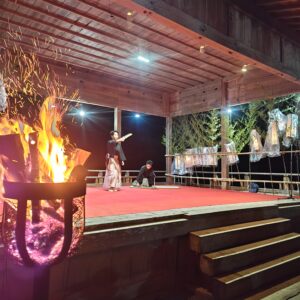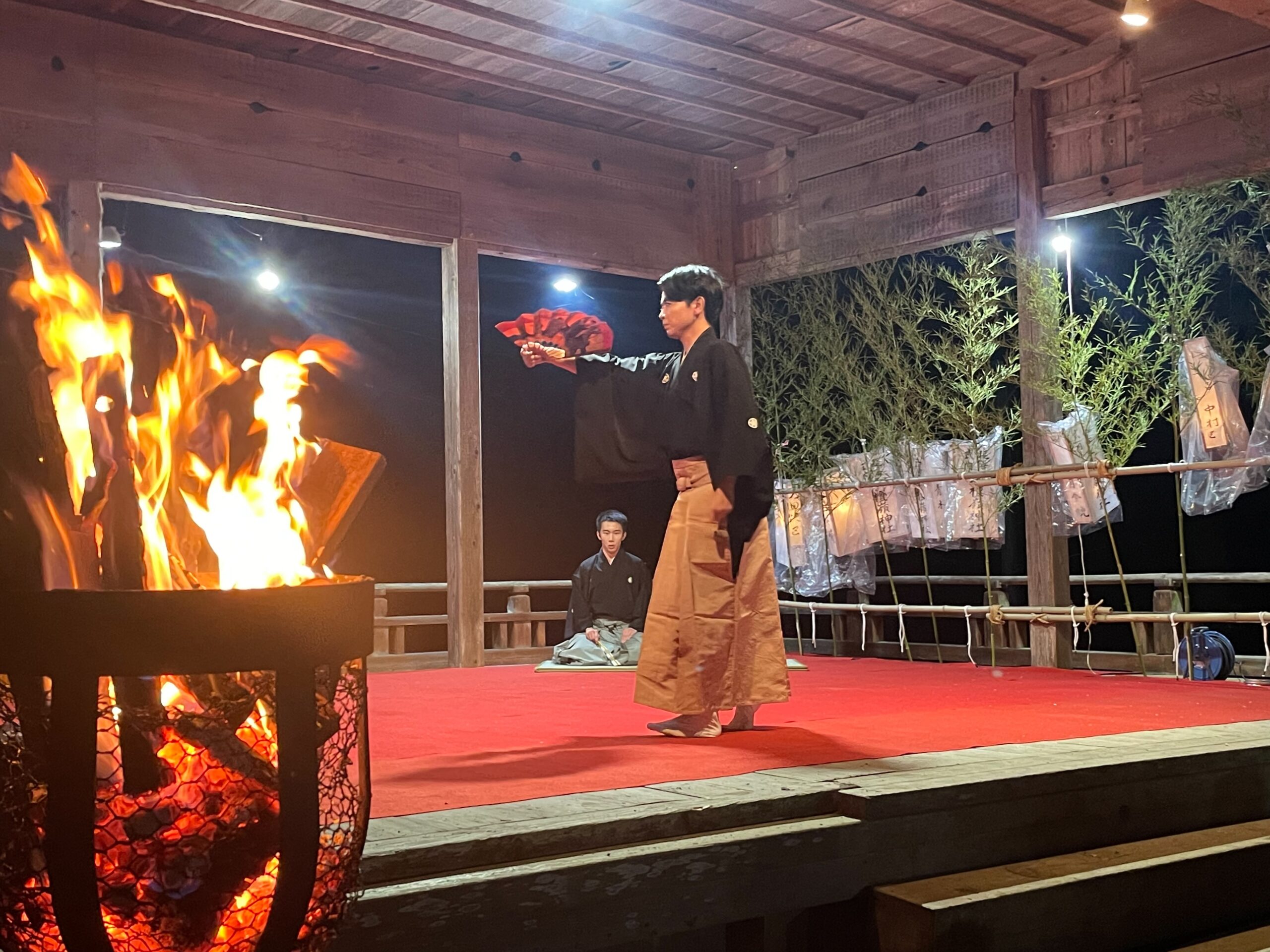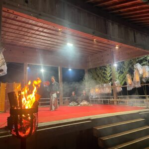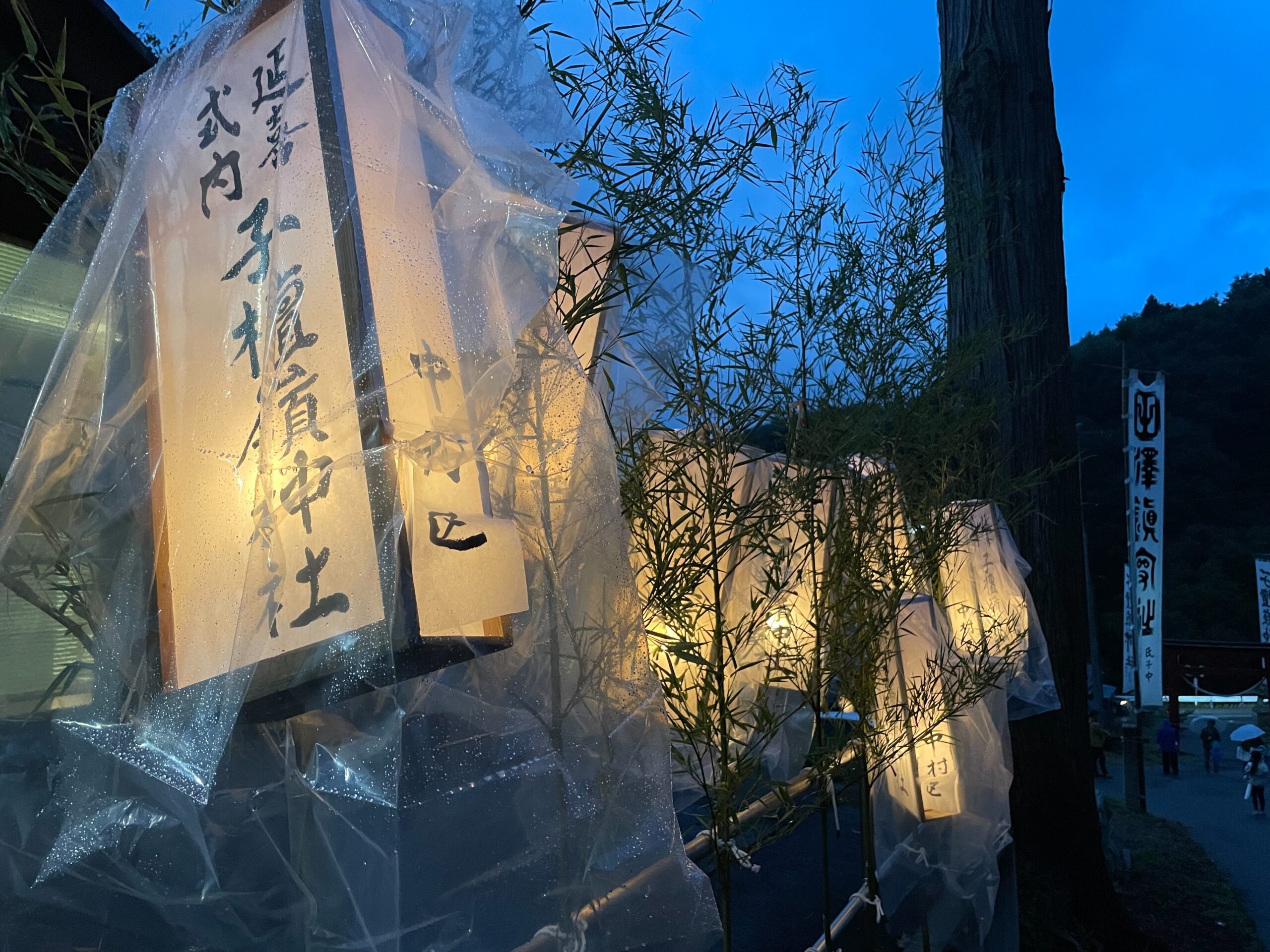 子檀嶺神社秋の例大祭に参加し、『能』の奉納をさせていただきました 2025.10.05 10月4日(土)に山城屋リゾートが位置する青木村中村区にある「子檀嶺神社」の秋季例大祭が執り行われました。 山城屋リゾートとしても参列して、竹灯籠を持って区や村の皆さん、子どもたちと一緒に麓の鳥居から拝殿まで約100メートル上がり、お参りいたしました。併せて、神社にある立派な神楽殿にて「能」を奉納させていただきました。 村の行事ではありますが、ここでしか体験できない空間・時間を過ごすことができるのは山城屋リゾートの特徴です。 2025/8/19~12/25 上信越工事につき佐久IC→碓氷軽井沢IC上り区間が車線規制のため余裕をもってお帰り下さい。 本格創作フレンチレストラン『Terre sainte de Aoki(テール サントゥ ドゥ アオキ)』オープン 新着記事 お知らせ一覧 2025.10.05 本格創作フレンチレストラン『Terre sainte de Aoki(テール サントゥ ドゥ アオキ)』オープン 2025.08.18 2025/8/19~12/25 上信越工事につき佐久IC→碓氷軽井沢IC上り区間が車線規制のため余裕をもってお帰り下さい。 2024.11.10 聴いて、学んで、体験できる!ヴァイオリンコンサートの文化交流スペシャルイベントを開催いたしました 2024.09.29 知って、観て、体験する『能』の文化交流スペシャルイベントを開催いたしました 2022.10.30 ドローンの達人にPR動画を撮影して頂きました。