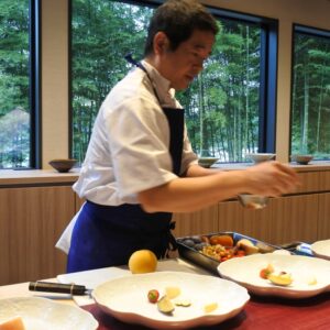 本格創作フレンチレストラン『Terre sainte de Aoki(テール サントゥ ドゥ アオキ)』オープン 2025.10.05 この度、山城屋リゾート内に本格レストラン『Terre saite de Aoki(テール サントゥ ドゥ アオキ)』をオープンいたしました。 10 月1 日(水) プレオープン (12 月グランドオープン予定) 住所 〒386-1601 長野県小県郡青木村田沢2690-1 山城屋リゾート 電話番号 0268-75-8821 和食の要素を取り入れたフレンチを、カウンタースタイルで楽しめるレストランです。朝採れの新鮮な食材や地元にしかない食材をふんだんに使い、必要以上の塩を使わずに調理を最低限に留め、素材の味を活かしたここでしか味わえない料理を堪能できます。大切なお客様のご接待や大切な方との特別な日にもぴったりなレストランです。 2009 年にパリ(フランス)で『Restaurant TOYO』をオープンし、2018 年には日比谷ミッドタウンに『Restaurant TOYO Tokyo』をオープン。予約が取りづらい店として常連から愛され続けているレストランのオーナーシェフ中山豊光氏が監修した今回の新店舗が『Terre sainte de Aoki(テール サントゥ ドゥ アオキ)』です。 山城屋リゾートは、この場所を気に入っていただいたみなさまが集まって、食事を楽しみながらゆったりとお話ができる空間や、ここにしかない時間、体験をとても大切にしています。 10 月~11 月の2 か月間、中山豊光シェフが来日し、お料理をご提供させていただきます。 この場所、この空間、この時でしか味わえないお食事をこの機会にお試しいただけましたら幸いです。みなさまのご来店を心よりお待ち申し上げます。(予約制) 期間限定プラン<食事のみ(ランチ・ディナー共通)> シェフのおまかせコース 創作フレンチ 20,000 円(税込) ※ドリンク別 <ご宿泊 シェフのおまかせコース 創作フレンチ夕朝食付プラン> 1泊2食付き 50,000 円/人(シェフのおまかせコース 創作フレンチ夕食&朝食付) ※ドリンク別 ※入湯税別 ※上田駅より送迎可 レストランでのお食事に加え、100%源泉かけ流し温泉がついた一棟建ての個室でのご宿泊がついたオーベルジュプランです。 営業時間:ランチ 11:30~14:30 ディナー 17:30~21:30 期間:10 月1 日~11 月30 日 お問合せ・ご予約レストラン予約の場合、ご宿泊付きレストラン予約の場合どちらの場合もメールもしくはお電話でご予約をお願いいたします。 Mail:yamashiroya.reserve@wafukai.or.jp TEL:0268-75-8821 (平日9-17時) 支配人 平林(ひらばやし) 子檀嶺神社秋の例大祭に参加し、『能』の奉納をさせていただきました 新着記事 お知らせ一覧 2025.10.05 子檀嶺神社秋の例大祭に参加し、『能』の奉納をさせていただきました 2025.08.18 2025/8/19~12/25 上信越工事につき佐久IC→碓氷軽井沢IC上り区間が車線規制のため余裕をもってお帰り下さい。 2024.11.10 聴いて、学んで、体験できる!ヴァイオリンコンサートの文化交流スペシャルイベントを開催いたしました 2024.09.29 知って、観て、体験する『能』の文化交流スペシャルイベントを開催いたしました 2022.10.30 ドローンの達人にPR動画を撮影して頂きました。